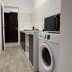 O bucătărie complet utilată include un cuptor cu microunde, un frigider și ustensile de bucătărie. Servind preparate din bucătăria central-europeană, Restaurantul Allegro se află la o distanță de 450 de metri de acest apartament. Acest apartament cu 1 dormitor se află la numai 400 de metri de stația de autobuz Policlinica Titan și la o scurtă plimbare cu mașina de stația de metrou Titan.
